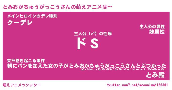 | 男性向けラノベタイトル風あだ名 | 『とみおかちゅうがっこうの憂鬱』 |