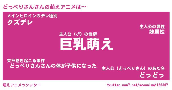 | 男性向けラノベタイトル風あだ名 | 『どっぺりさんの憂鬱』 |