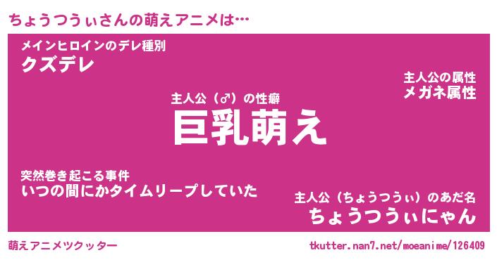 | 男性向けラノベタイトル風あだ名 | 『ちょうつうぃの憂鬱』 |