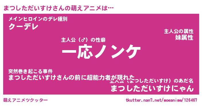 | 女子向けラノベタイトル風あだ名 | 『誰かこのまつしただいすけを説明してください! ~契約から始まるウェディング~』 |