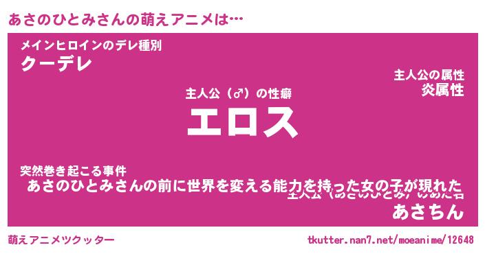 | 女子向けラノベタイトル風あだ名 | 『誰かこのあさのひとみを説明してください! ~契約から始まるウェディング~』 |