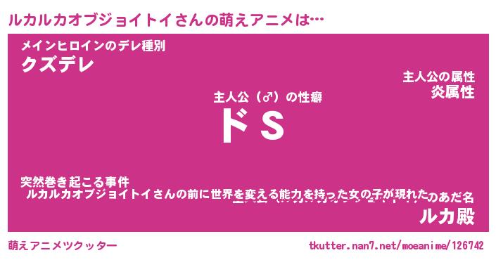 | 肩書あだ名 | 『ルカルカオブジョイトイ店長』 |
