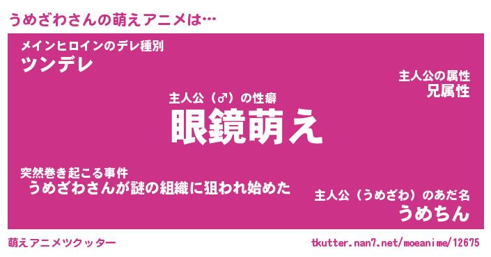 | 男性向けラノベタイトル風あだ名 | 『うめざわの憂鬱』 |