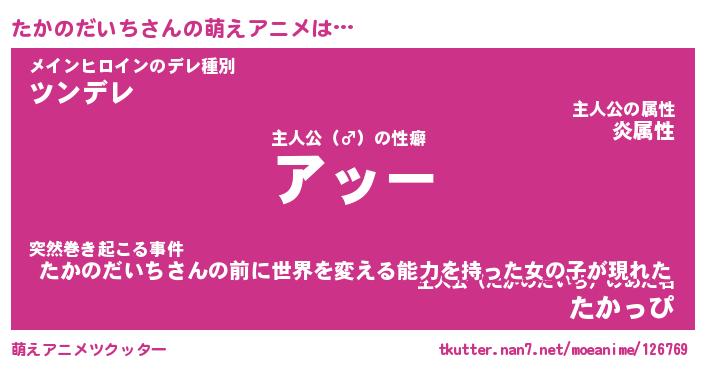 | 男性向けラノベタイトル風あだ名 | 『タカノダイチアートオンライン』 |