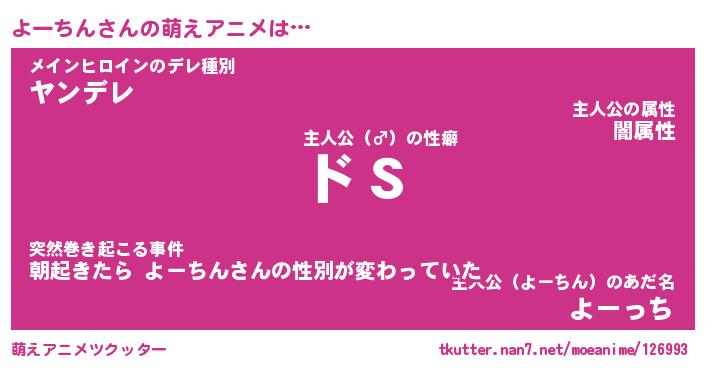 | 男性向けラノベタイトル風あだ名 | 『よーちんの憂鬱』 |