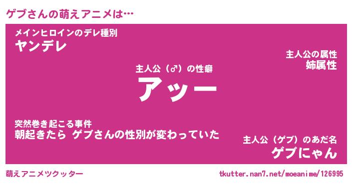 | ヘコむあだ名 | 『ゲブにゅー』『つくし』『ゲブを』 |