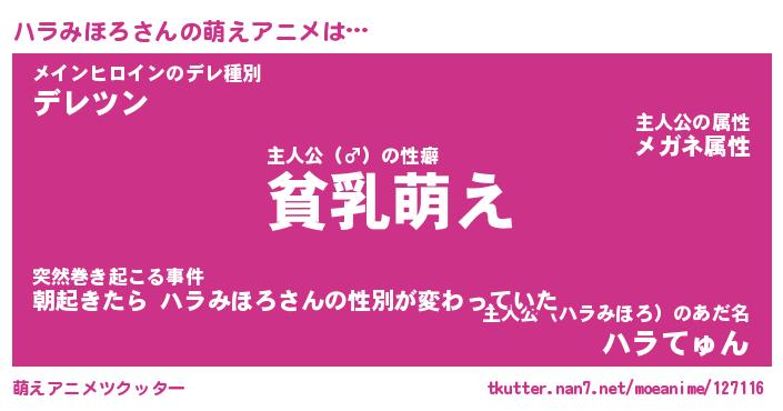 | ヘコむあだ名 | 『ハラにゅー』『豆乳』『ハラを』 |