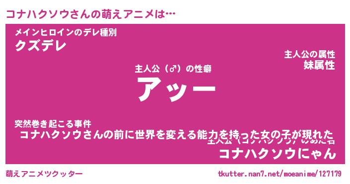 | 男性向けラノベタイトル風あだ名 | 『コナハクソウアートオンライン』 |