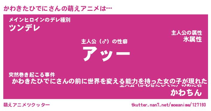 | 女子向けラノベタイトル風あだ名 | 『誰かこのかわきたひでにを説明してください! ~契約から始まるウェディング~』 |