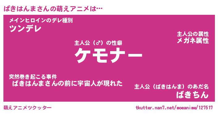 | 自動車の名前っぽいあだ名 | 『バキティマ』『バクア』『デミバ』 |