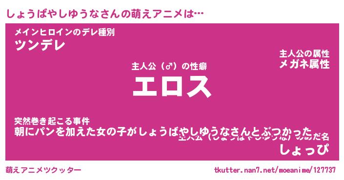 | 伝説のあだ名 | 『封印されし竜騎士しょうばやしゆうな』 |