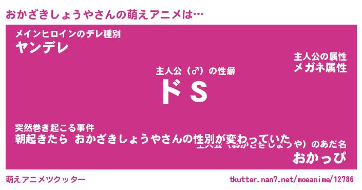 | 女子向けラノベタイトル風あだ名 | 『(仮)おかざきしょうやのやんごとなき事情』 |