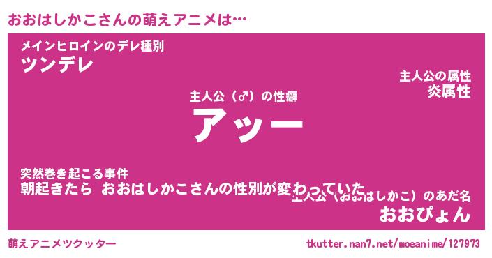| 男性向けラノベタイトル風あだ名 | 『オオハシカコアートオンライン』 |