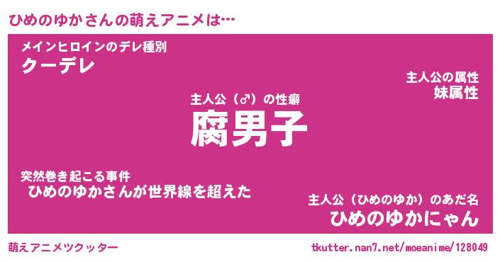 | 男性向けラノベタイトル風あだ名 | 『ヒメノユカアートオンライン』 |