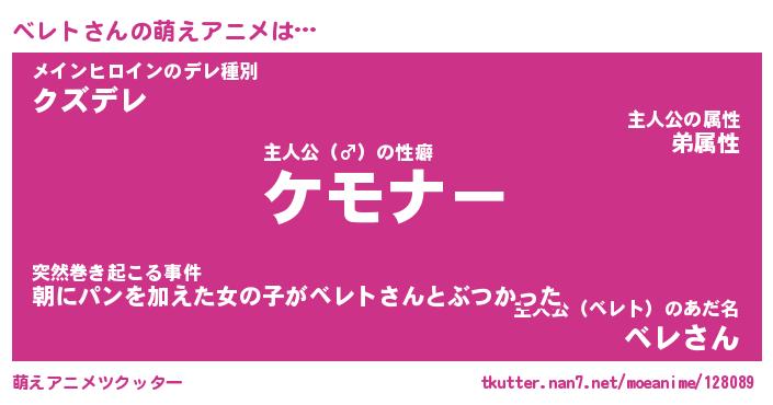 | ヘコむあだ名 | 『ベレにゅー』『酢こんぶ』『ベレお』 |