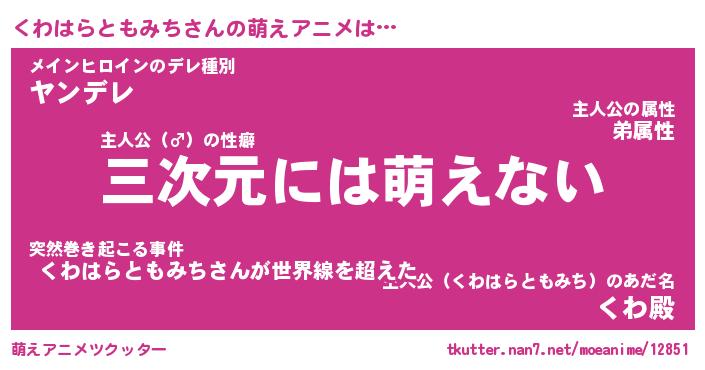 | 肩書あだ名 | 『くわはらともみち御曹司』 |