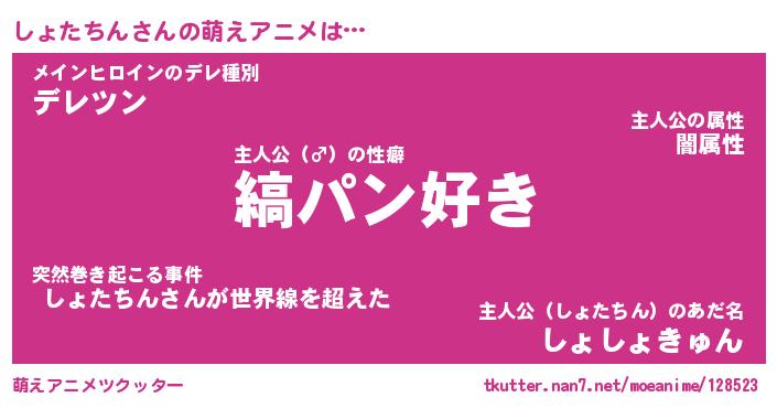 | 男性向けラノベタイトル風あだ名 | 『しょたちんの憂鬱』 |