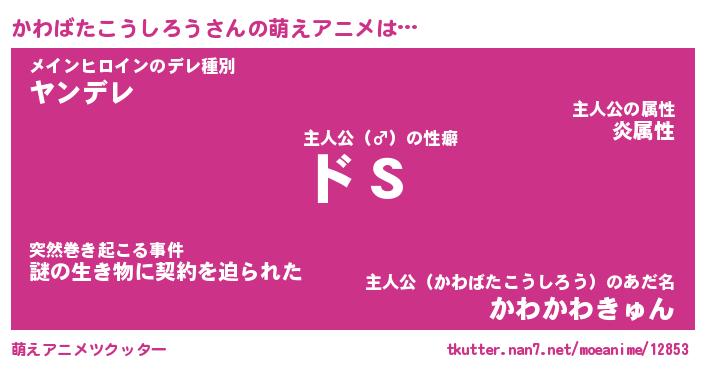 | 女子向けラノベタイトル風あだ名 | 『(仮)かわばたこうしろうのやんごとなき事情』 |