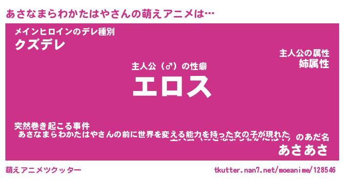 | ヘコむあだ名 | 『あさもー』『なまこ酢』『あさっぺ』 |
