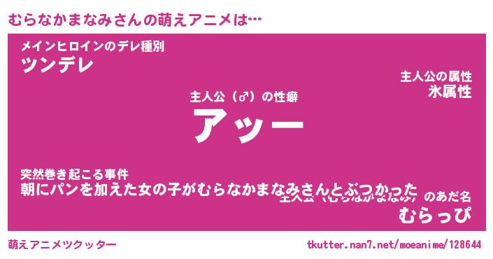 | 男性向けラノベタイトル風あだ名 | 『ムラナカマナミアートオンライン』 |