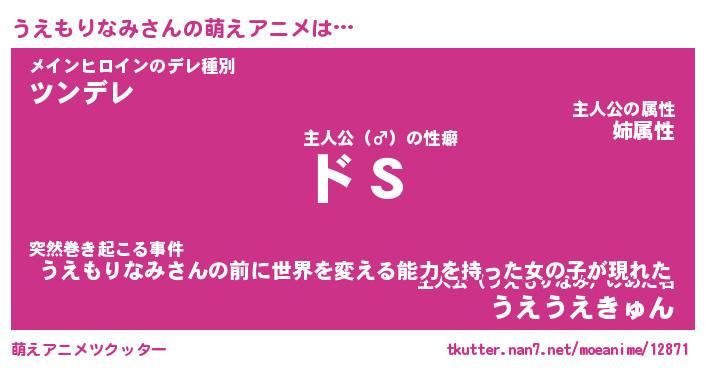 | 男性向けラノベタイトル風あだ名 | 『うえもりなみの憂鬱』 |