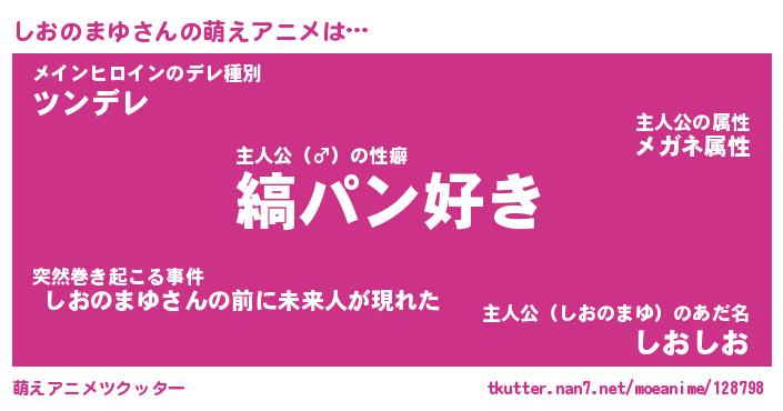 | 男性向けラノベタイトル風あだ名 | 『しおのまゆの憂鬱』 |