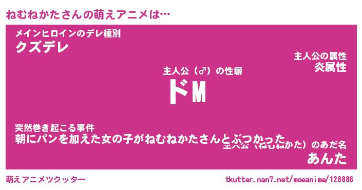 | ヘコむあだ名 | 『ねむもー』『レバニラ』『ねむっ子』 |