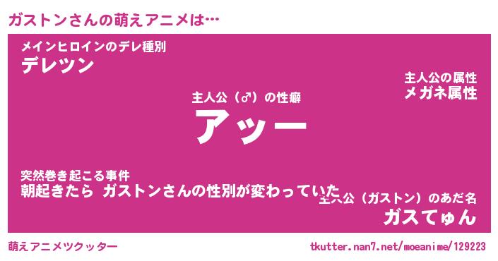 | 女子向けラノベタイトル風あだ名 | 『誰かこのガストンを説明してください! ~契約から始まるウェディング~』 |