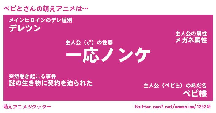 | 女子向けラノベタイトル風あだ名 | 『誰かこのペピとを説明してください! ~契約から始まるウェディング~』 |