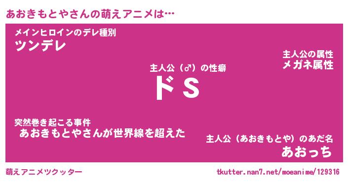 | 男性向けラノベタイトル風あだ名 | 『あおきもとやの憂鬱』 |