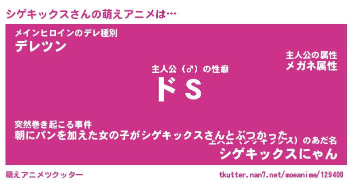 | 男性向けラノベタイトル風あだ名 | 『シゲキックスの憂鬱』 |