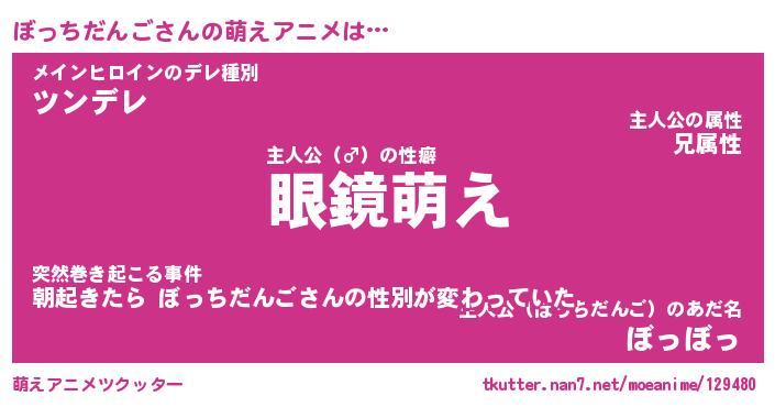| ヘコむあだ名 | 『ぼっにー』『豆乳』『ぼっぷりん』 |