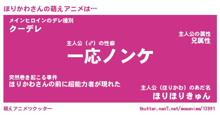 | 女子向けラノベタイトル風あだ名 | 『誰かこのほりかわを説明してください! ~契約から始まるウェディング~』 |