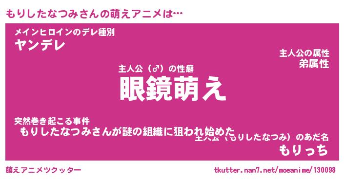 | 女子向けラノベタイトル風あだ名 | 『もりしたなつみ姫と円卓の騎士』 |