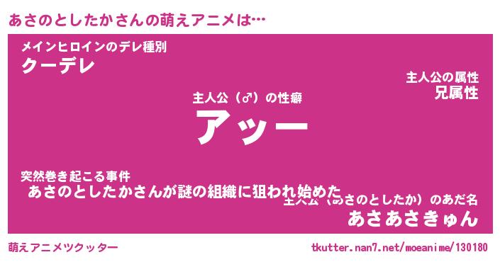 | ヘコむあだ名 | 『あさにー』『レバニラ』『あさを』 |