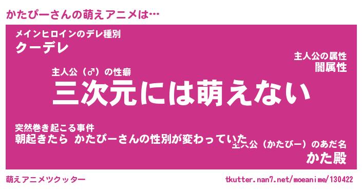 | 胡散臭い通販商品みたいなあだ名 | 『モテモテ間違いなし水晶球…その名も「かたぴー」』 |