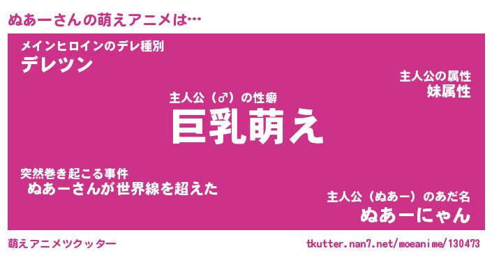 | 男性向けラノベタイトル風あだ名 | 『ぬあーの憂鬱』 |