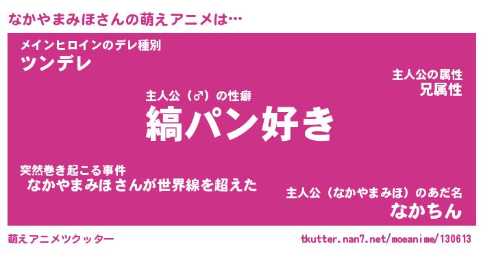 | 女子向けラノベタイトル風あだ名 | 『(仮)なかやまみほのやんごとなき事情』 |