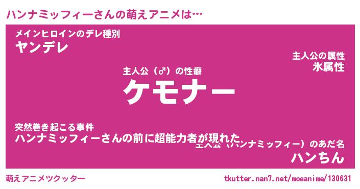 | ヒーロー風カッコイイあだ名 | 『スーパーハンナミッフィー』 |