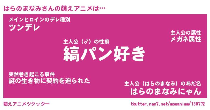 | 男性向けラノベタイトル風あだ名 | 『はらのまなみの憂鬱』 |