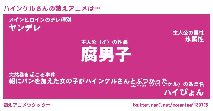 | 料理風あだ名 | 『節約★ハインケルと油揚げの玉子丼』 |