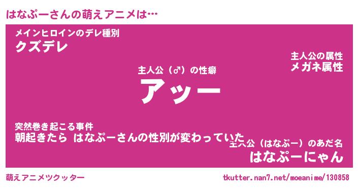 | 意味不明あだ名 | 『ペロリンはなぷー』『永久保存はなぷー』 |