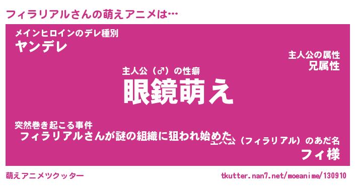 | 男性向けラノベタイトル風あだ名 | 『フィラリアルの憂鬱』 |