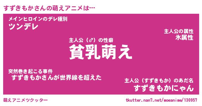| 男性向けラノベタイトル風あだ名 | 『すずきもかの憂鬱』 |