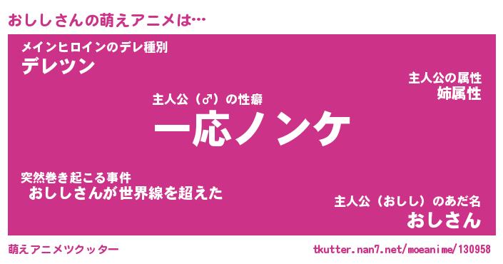 | 男性向けラノベタイトル風あだ名 | 『オシシアートオンライン』 |
