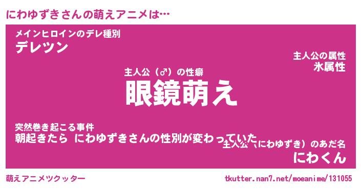 | 男性向けラノベタイトル風あだ名 | 『にわゆずきの憂鬱』 |