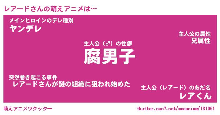 | 男性向けラノベタイトル風あだ名 | 『レアードアートオンライン』 |