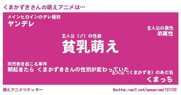 | ヘコむあだ名 | 『くまもー』『つくし』『くまお』 |