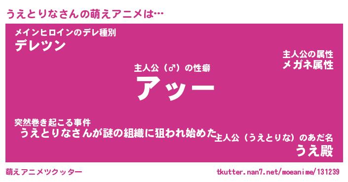 | 女子向けラノベタイトル風あだ名 | 『誰かこのうえとりなを説明してください! ~契約から始まるウェディング~』 |