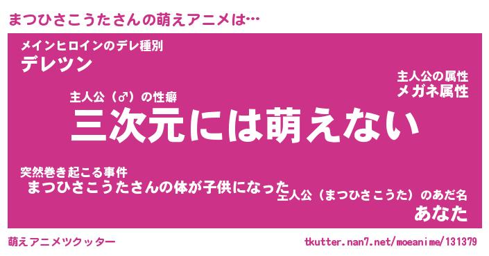 | 肩書あだ名 | 『まつひさこうた御曹司』 |